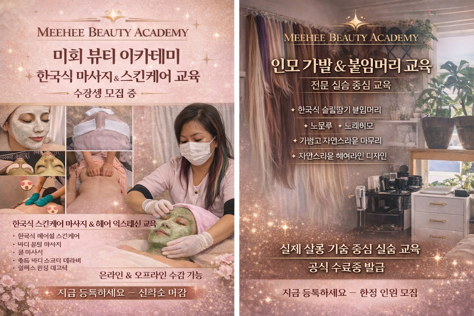 Meehee Academy teaches Korean beauty skills and healing hypnosis.