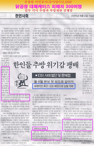 또한 유창한 이민공사(공기업아님, EBI)도 닭공장 대체케이스 다량위조로 인하여 300명의
