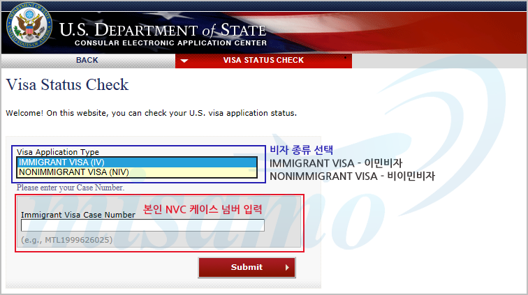 NVC Status Check → 링크 클릭하시고 해당되는 부분을 클릭하시기 바랍니다. (아래 사진으로 첨부해드립니다)