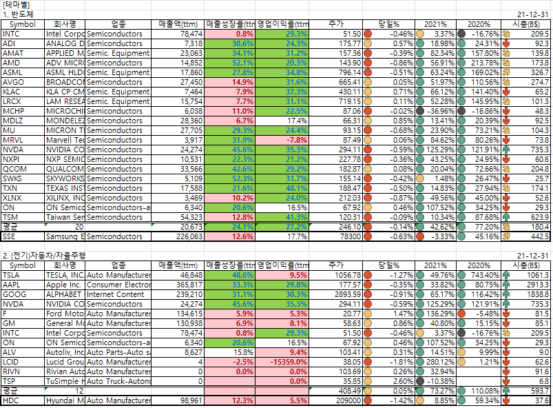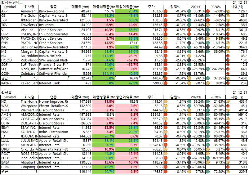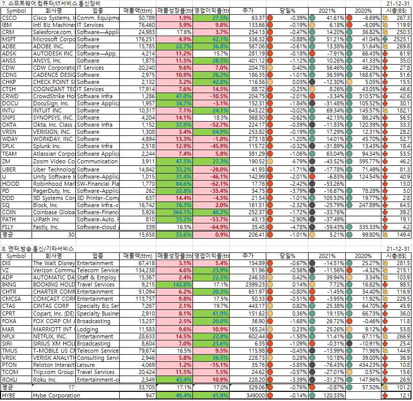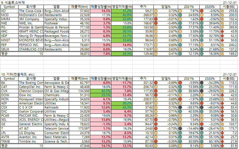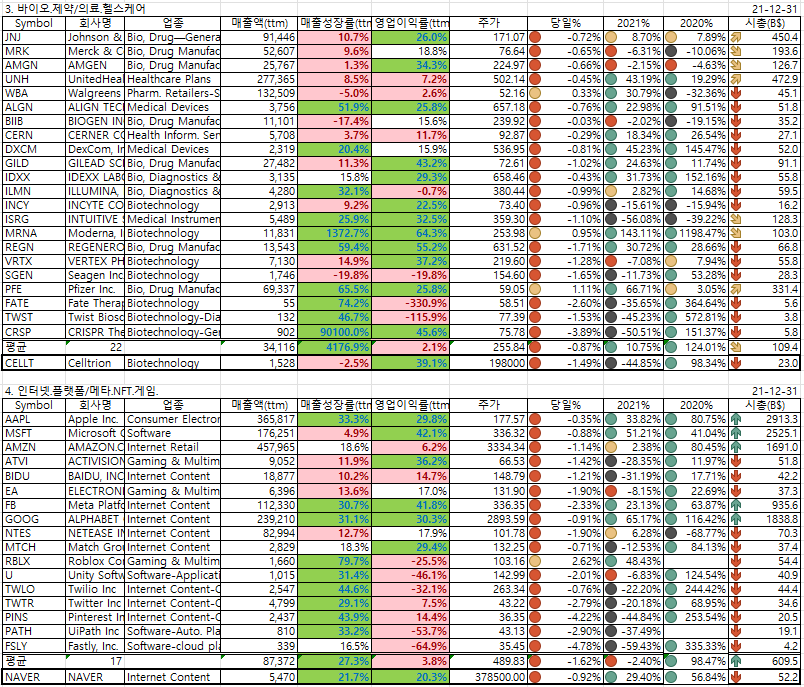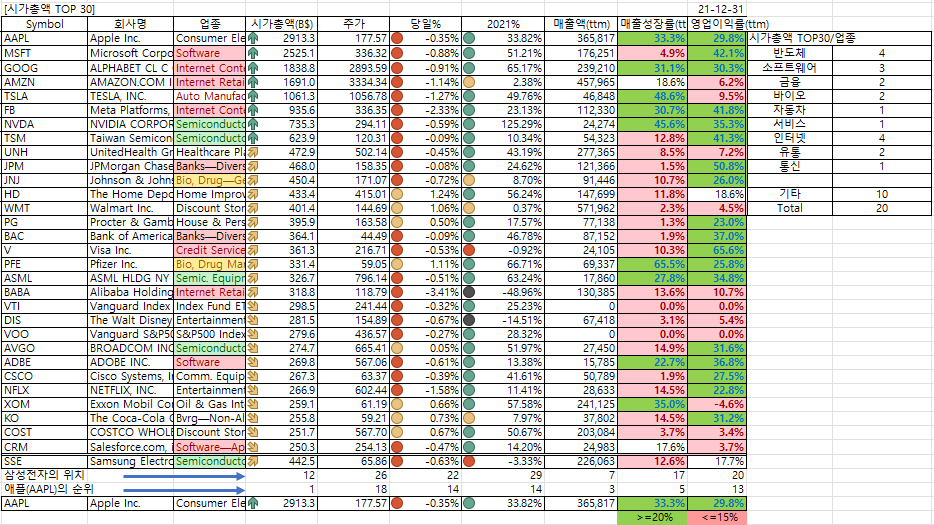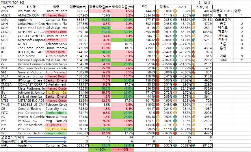 2021년말 현재 시총TOP30/매출액TOP30 종목(박제)