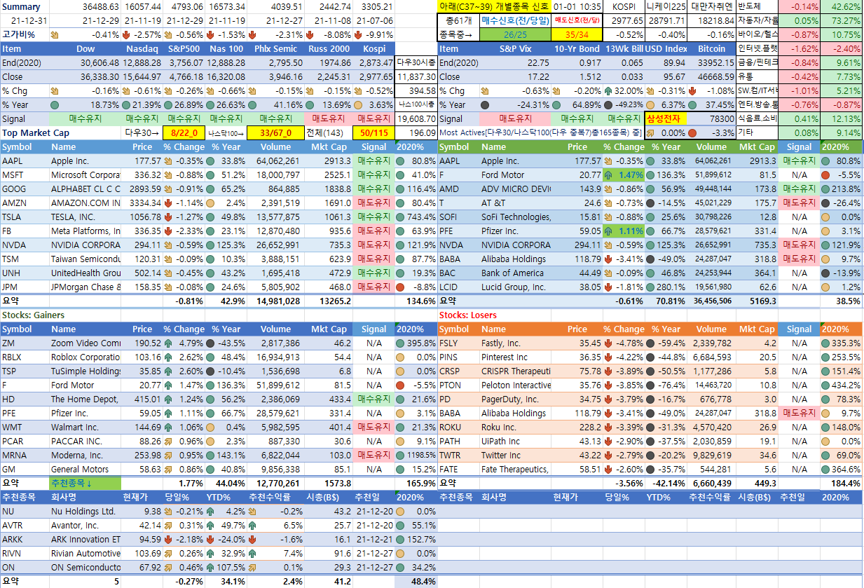 <12/31일 미국시장 종합상황판>