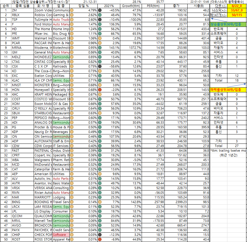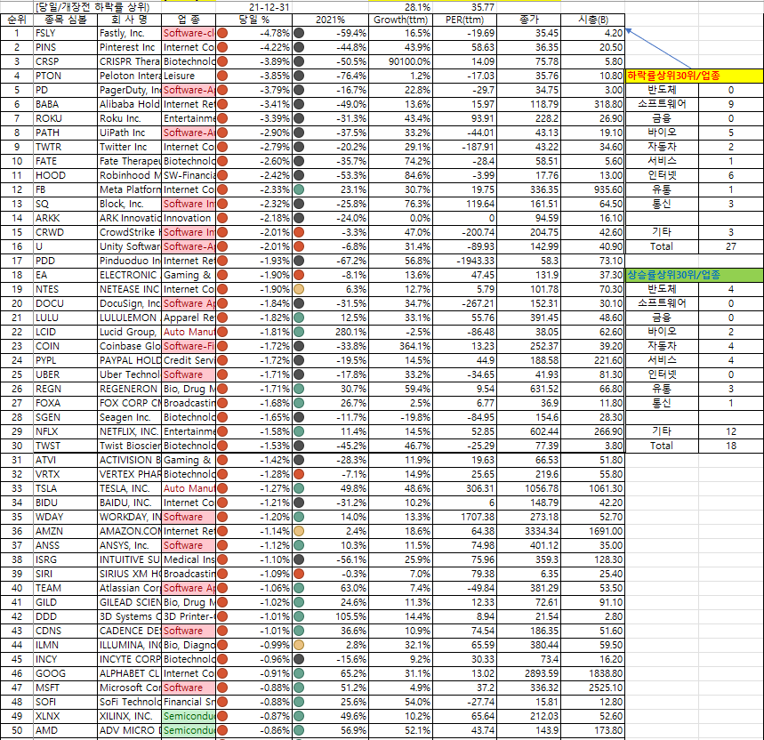 당일의 상승상위종목을 보면, 올해 좋았던 종목이 말일까지도 상승했으며,