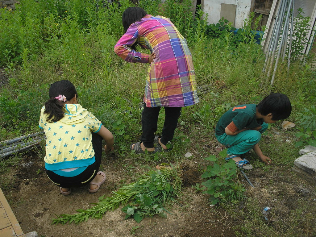 마침 막 이사를 시작한 후배 성원이네 앞마당에 풀이 자라고 있어 풀뽑기를 하기로 했다. 석훈이와 성원이네도 농약을 전혀 치지 않기때문에 제초제를 치지않으면 풀이 그냥 자라는데로 두는데 동네 나이 많은 사람들이 입을 조금씩 댄다고 한다. 사람 사는 곳에 풀이 자란다고 뭐라 하기도 한단다. 봉화 집의 집세는 싸다. 일년에 40만원..그래도 아무나 빌려주지는 않는다고 한다.