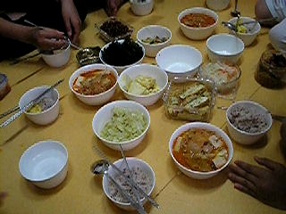 그리고 가져온 밑반찬과 함께 저녁을 먹었다. 대부분 2그릇씩 맛있게 먹었다.