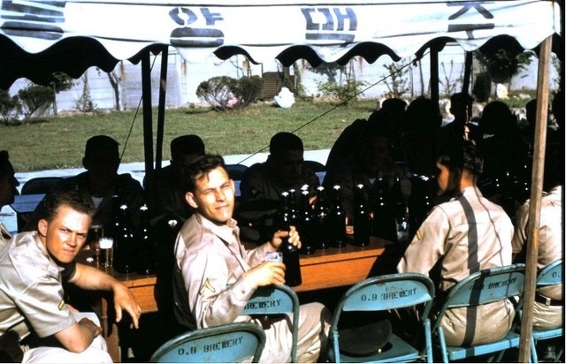서울 영등포 동양 맥주 공장을 방문하여 OB 맥주를 시음하는 미군 - 1964년