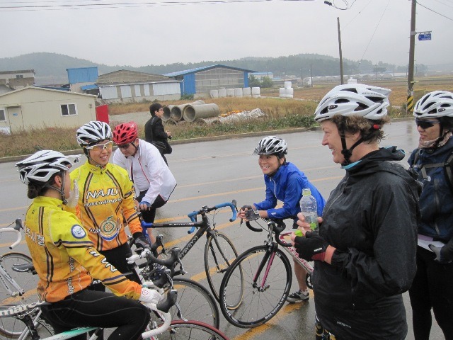 The next morning, after a hearty breakfast of Naju’s famous gom-tang, we were joined by five young women training for the Asia Games with the Naju Women’s Cycling Team. We rode together along country roads, empty of traffic on an early Sunday morning, talking about their training program and their hopes and dreams. Our ride from Naju to Yeongam was a lazy Sunday pedal for these world-class athletes, until we put them in front to set the pace. For about twenty kilometers we rode tightly as a team, with me and the rest of Team Embassy “drafting” behind the pacesetting athletes. What fun! I enjoyed talking to these young women, who are training for the upcoming Asian Games in