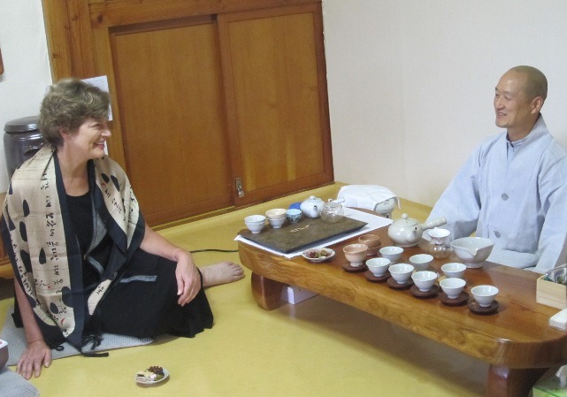 Unjusa Temple’s Head Monk Jeong-haeng served tea and told us about the temple’s history.