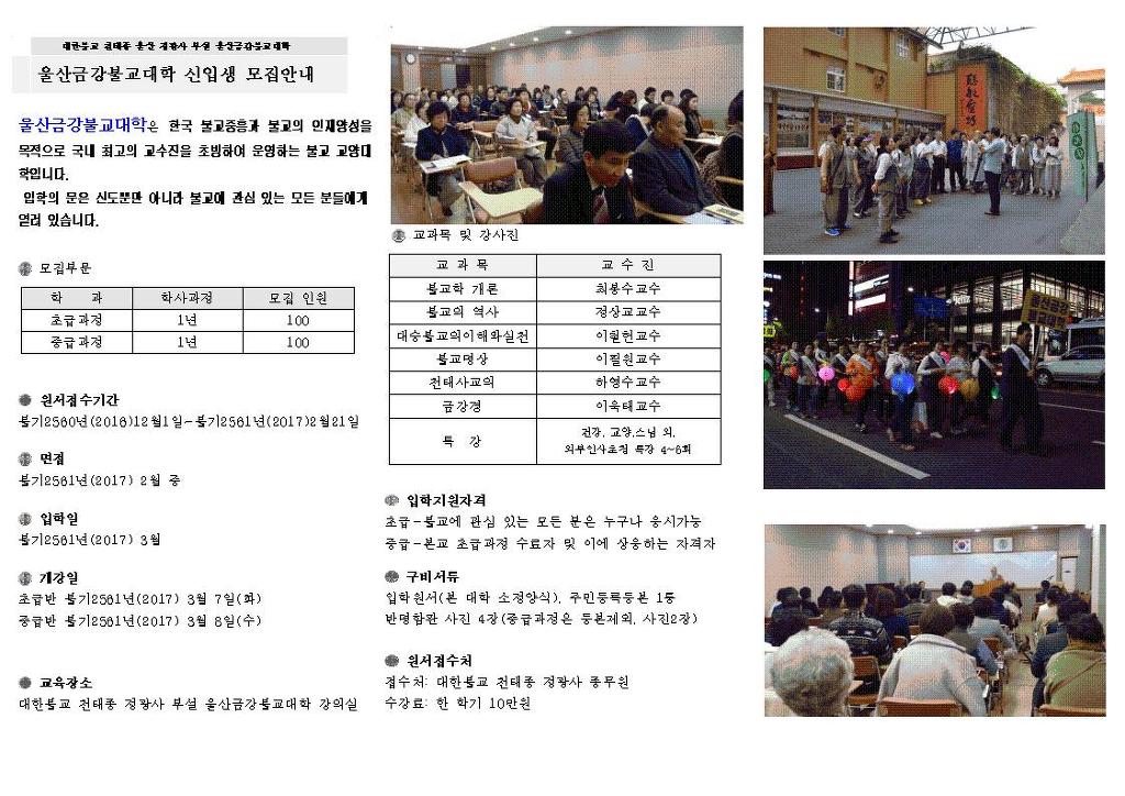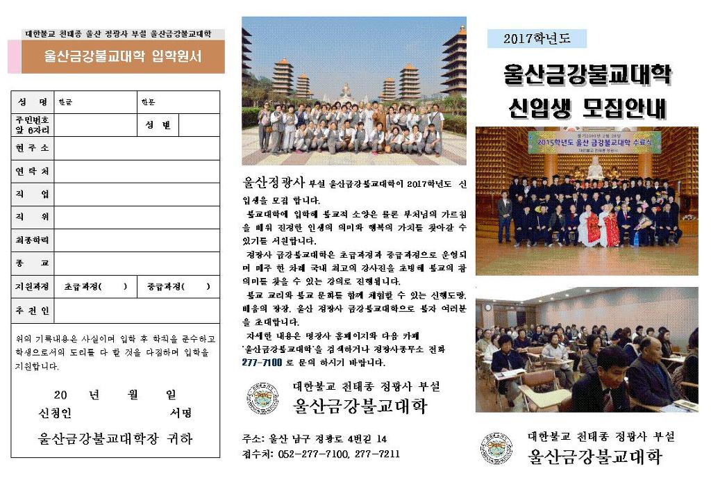 2017년도 정광사 금강불교대학 신입생모집안내 작성자유순열 3기|작성시간17.02.02|조회수166 목록 댓글 0 글자크기 작게가 글자크기 크게가 다음검색 현재 게시글 추가 기능 열기 북마크 공유하기 신고 센터로 신고 댓글 댓글 0 댓글쓰기 답글쓰기 댓글 리스트