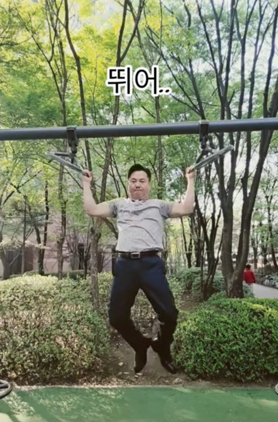 철봉에 몸을 맡기며 하루를 준비합니다.