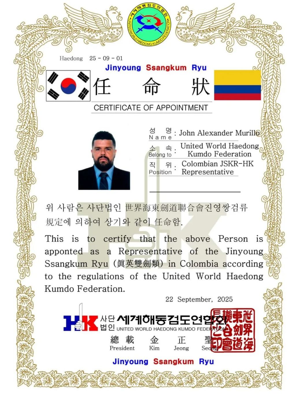 🇨🇴 Alexander Murillo, Representante de Haedong Kumdo en Colombia