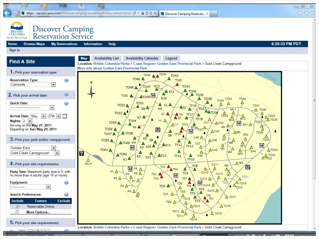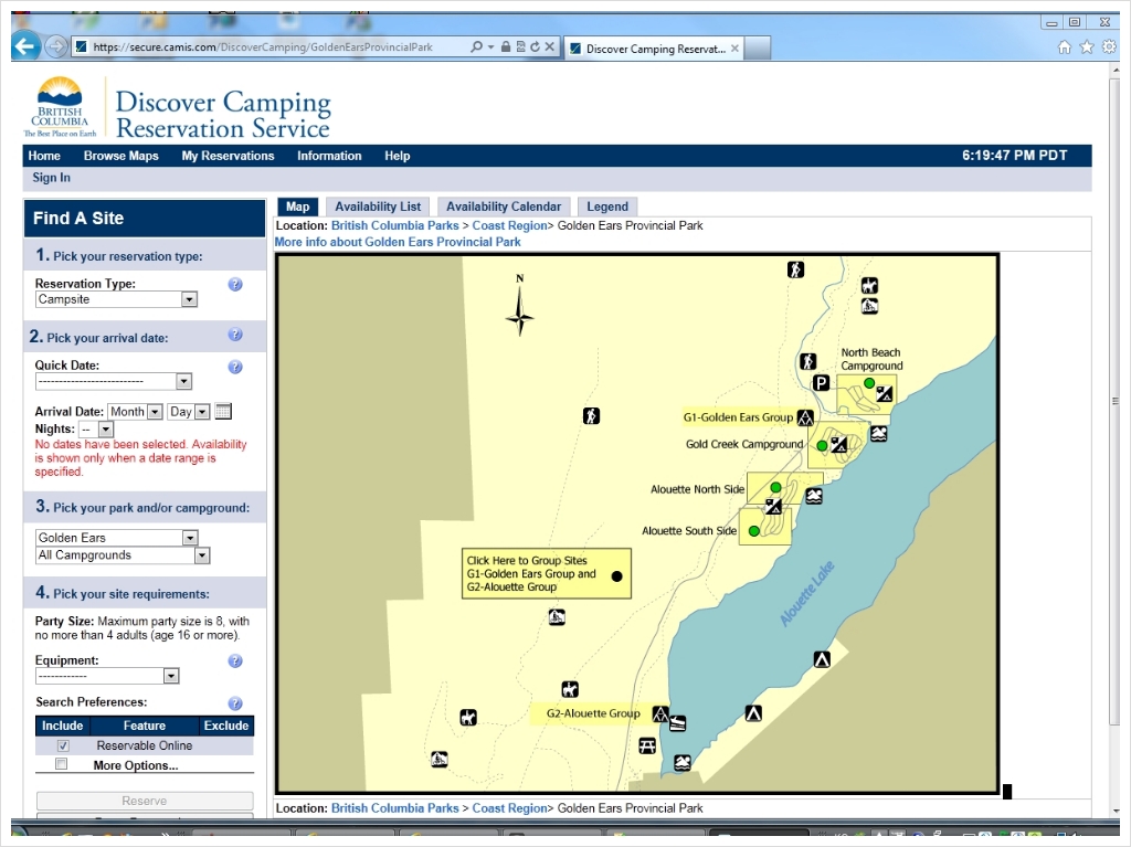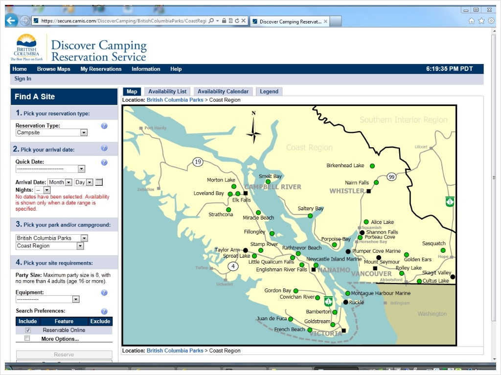 아래 싸이트는 캐나다 주립공원 (Provincial Park) 캐핑장 예약 싸이트입니다.
