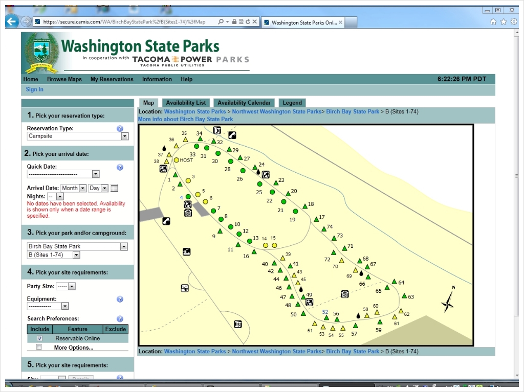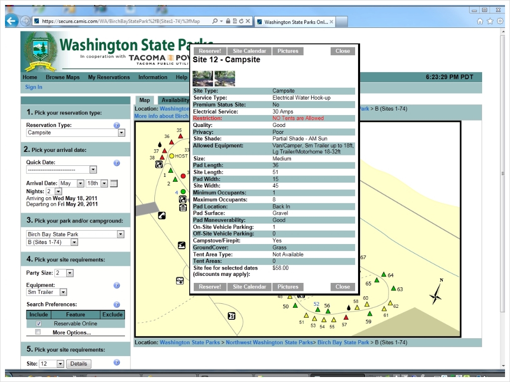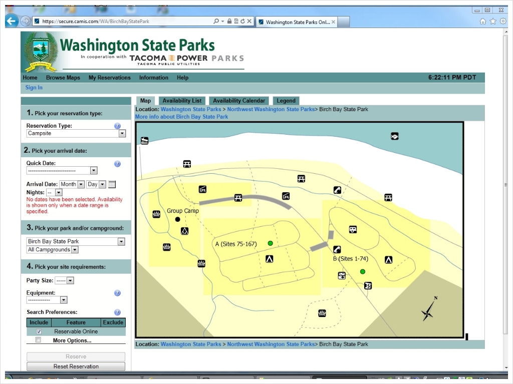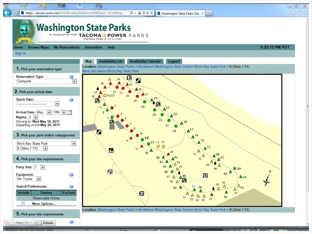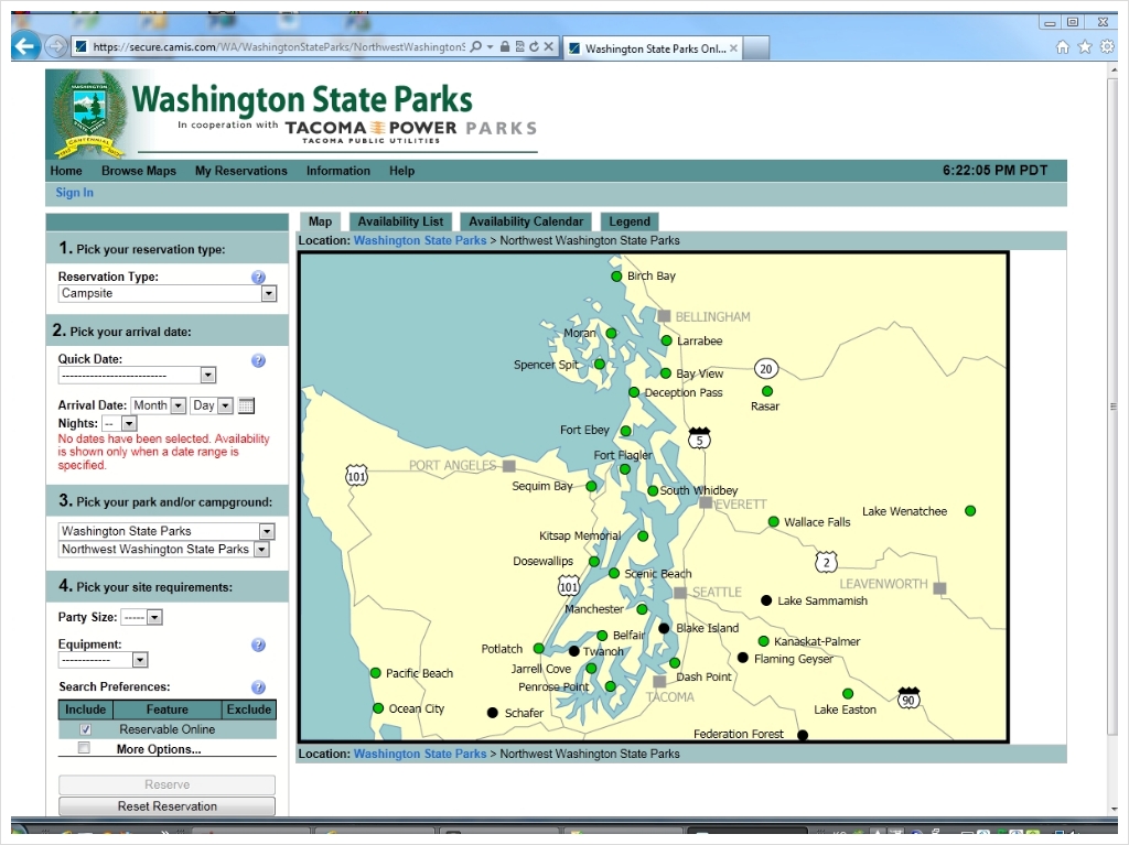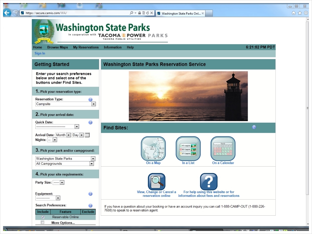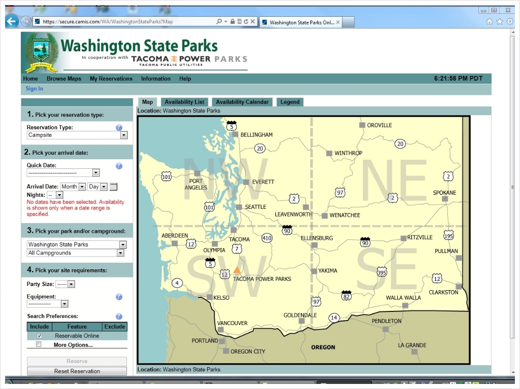 다음화면은 미국 워싱턴주립공원 예약 싸이트입니다.