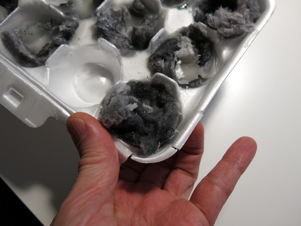 FIRE STARTER에는 초의 형태를 유지하면서 불이 잘 붙도록 심지가 필요한데요, 평소에 세탁기 드라이어에서 (LINT) 를 모아둡니다. 매번 먼지 걸름 망을 청소해 줄때마다 LINT를 버리지 말고 모아두면 나중에 이렇게 훌륭하게 쓸 수 있습니다.