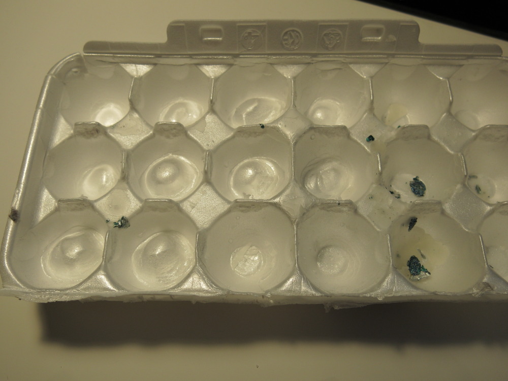 초가 녹는 동안 스티로폼 계란 포장재를 준비합니다.