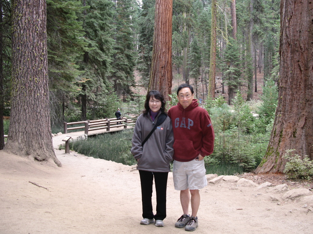나무 옆에 사람과 비교해 보세요..정말 나무가 큽니다. 쎄콰이어라는 수종입니다.