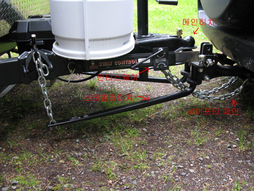 Trailer 의 히치는1)Main Hitch. 2)Stabilizer, 3)Break & power cable등 크게 3부분으로 나누어 지며 그외에도 Anti Sway, Safety Chain, Breakaway Cable등이 추가로 연결됩니다.