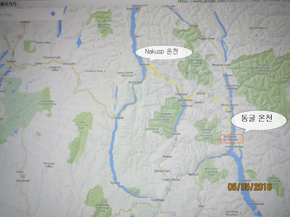 오늘밤은 Nakusp 온천 근처에서 지내기로 하고