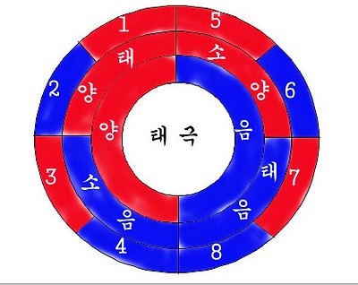 ▲태극(太極)의 사상(四象)에서 음양(陰陽)의 배수(倍數)가 4수에서 다시 배수한 8수는 자연의 성상(成象)을 도식한 것이다.
