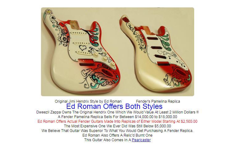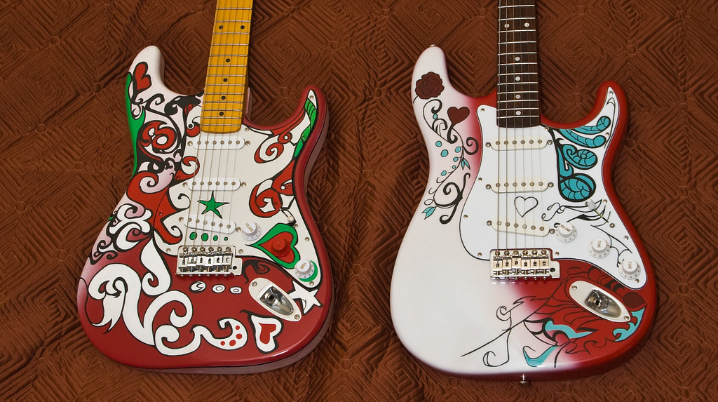 복원 모델의 말도 안나오는 미친 가격 때문에 저 기타를 살 수 없는 아메리카의 헨드릭스 빠돌이 빠순이들은 양산품 스트랫을 사다가 저 기타처럼 리페인트칠하는 애들이 셀 수 없을 정도로 많다.