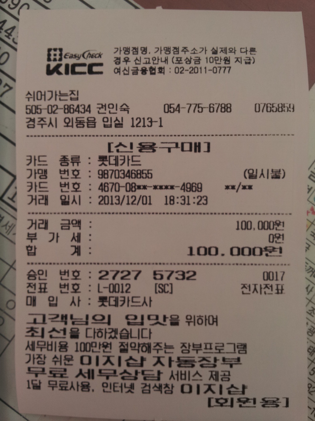 영수증사진 작성자vcvcp한봉렬|작성시간13.09.23|조회수1,243 목록 댓글 0 글자크기 작게가 글자크기 크게가 다음검색 현재 게시글 추가 기능 열기 북마크 공유하기 신고 센터로 신고 댓글 댓글 0 댓글쓰기 답글쓰기 댓글 리스트