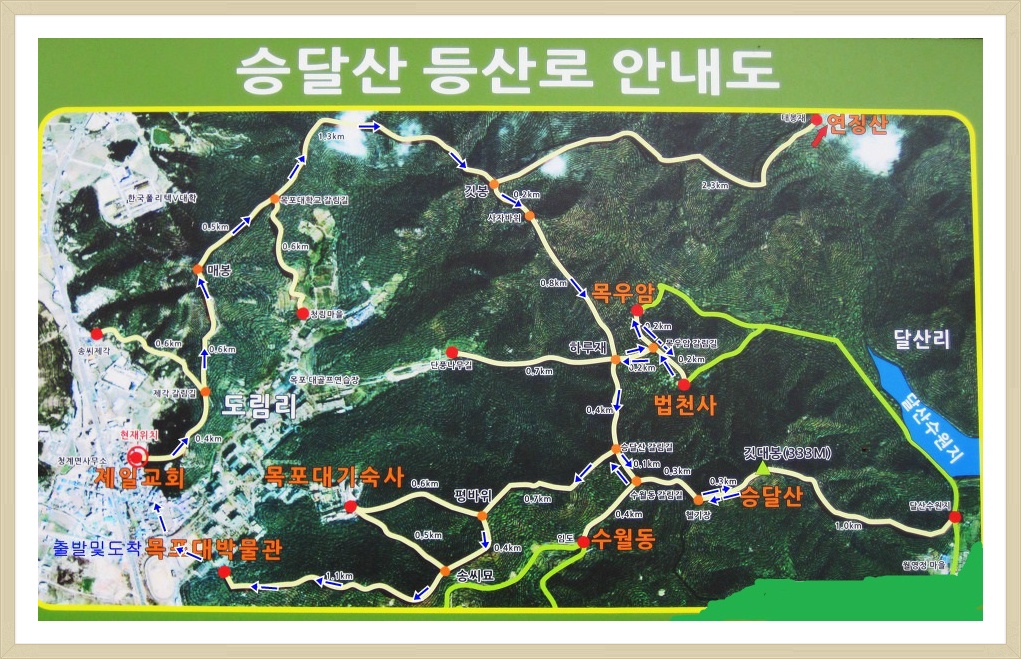 *A코스: 청계교회-매봉-깃봉-하루재-목우사-법천사-노승봉-승달산-목포대학(4시간)
