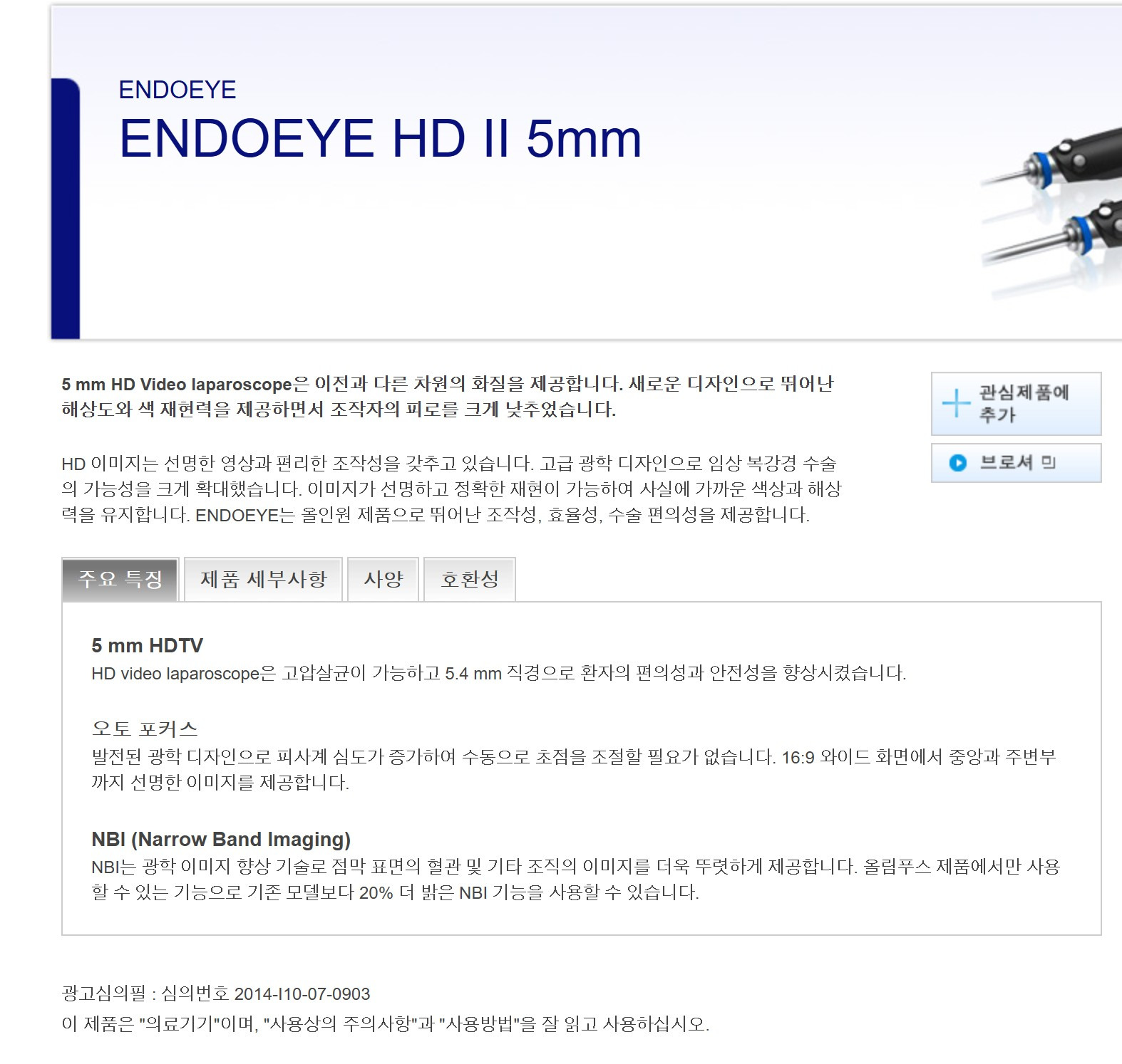 Olympus HD ENDOEYE™ Video Laparoscope = 250만원(부가세별도)