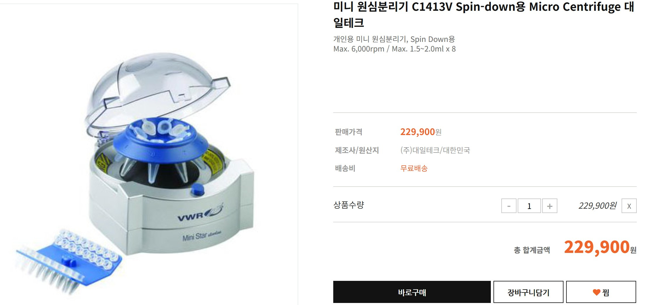 1. VWR Mini Star Microcentrifuge = 가격 10만원