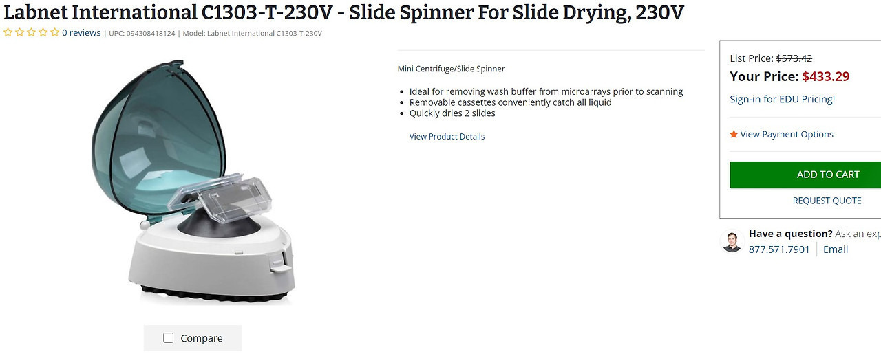 2. Labnet C1303-T-230V Mini Centrifuge/Slide Spinner = 가격 10만원
