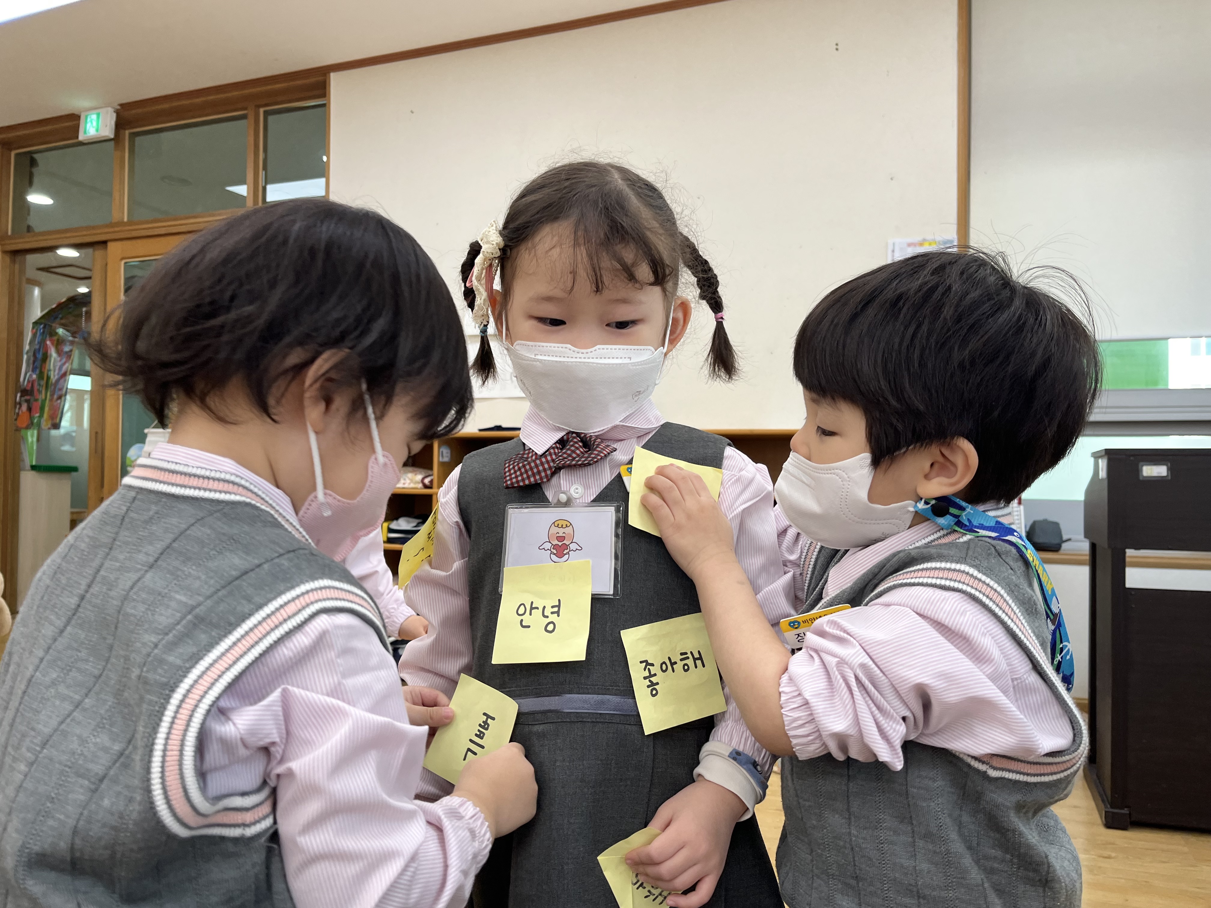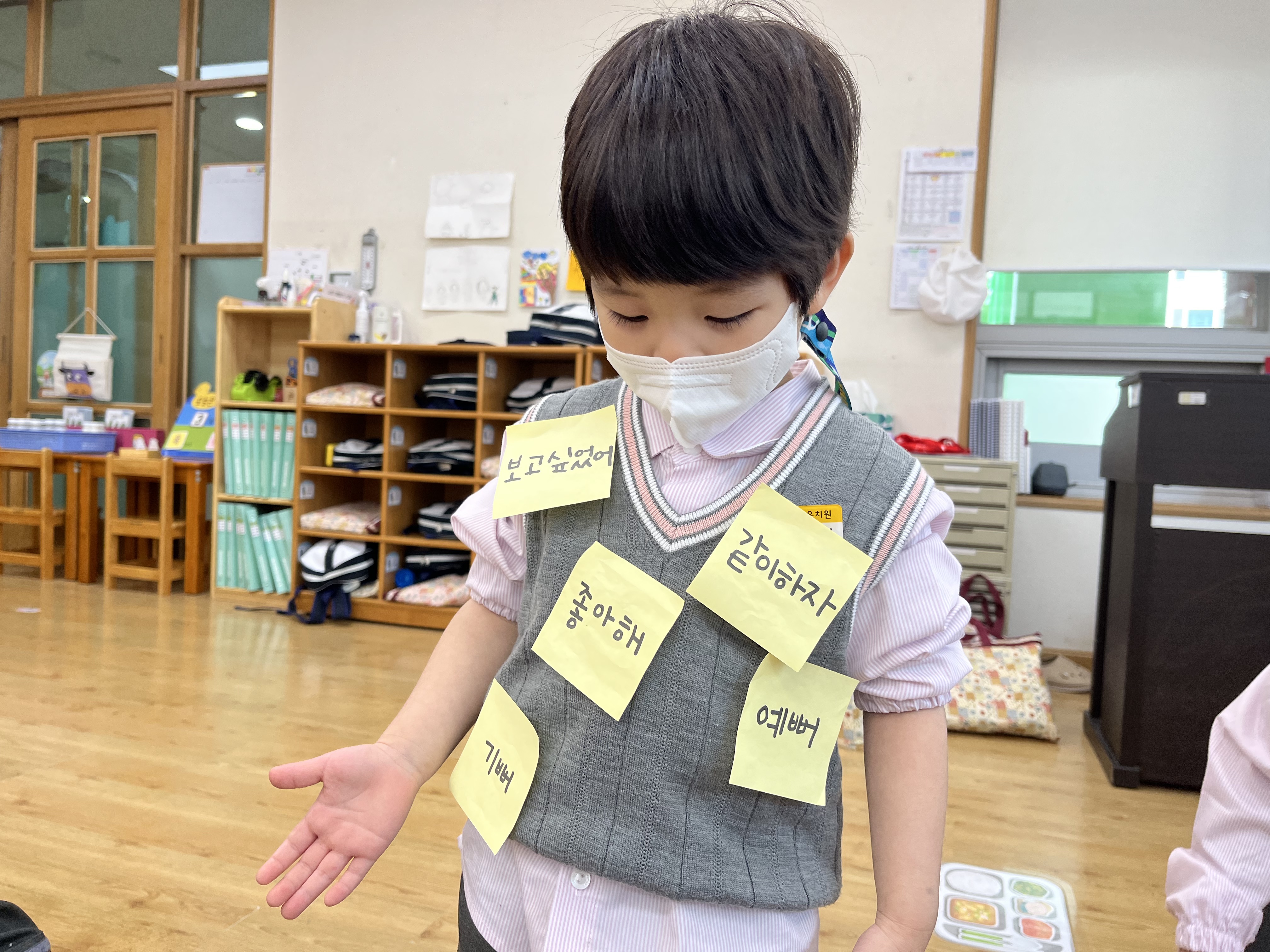 ์น๊ตฌ์๊ฒ ์ฌ๋ํด ์ข์ํด ๋ฑ์ ๊ธ์์นด๋๋ฅผ ๋ถ์ฌ์ฃผ๋ฉฐ ์ด์ผ๊ธฐ๋ ํด๋ณด๊ณ ๋ชธ์ ๋ถ์ ์นด๋๋ฅผ ์์ ์ฐ์ง ์๊ณ