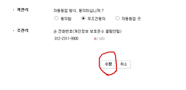 4) 그림에서 처럼 수정 클릭후 빠져 나오면 끝 -