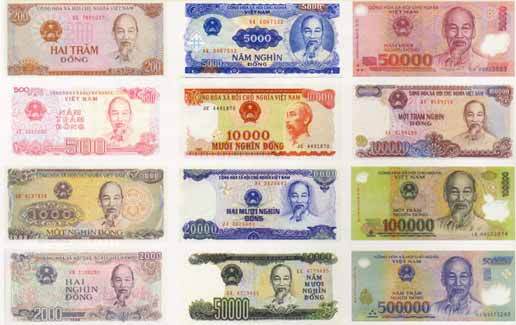현재(2006년5월) 200,500,1000,2000,5000동 짜리 주화가 새로 나왔으며, 2만동,5만동,10만동,50만동짜리 새로운 지폐가 통용되고 있습니다.