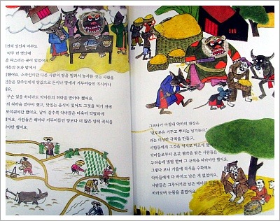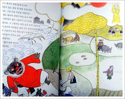 소리가 힘차게 들렸어요. 반면 악마들에게 돌아온 건 들판에 벼를 베고 남은 그루터기뿐 이었어요.
