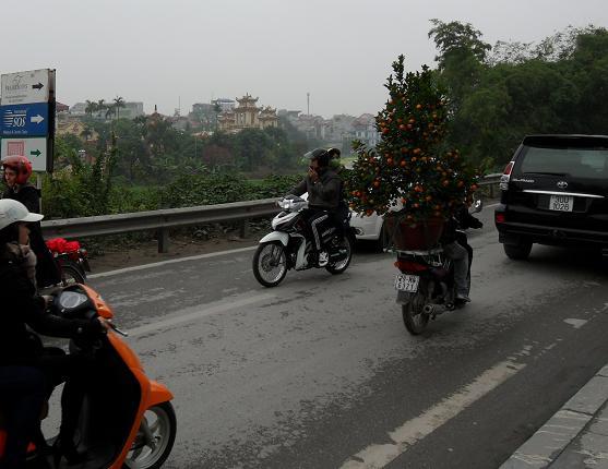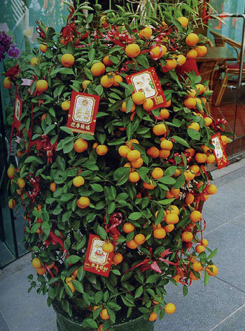 구정 절기의 진풍경은 1m 남짓한 꼬마 귤나무와 복숭아꽃이 거리를 화려하게 장식하고 있다.