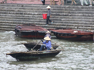 선착장 근처에 있는 베트남 아줌마들. 저 배를 타고 물건을 옮기거나 멀리 떨어진 배까지 태워다 주기도 한다.