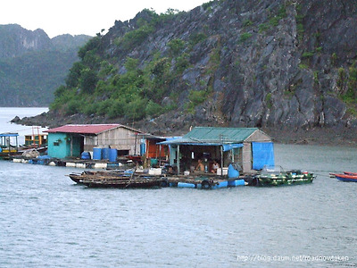 조각배를 타고 낚시를 하고 있는 현지인. 참고로 카약을 타는 동안 물고기를 사기도 한다. 아마도 이런 식으로 잡은 고기를 가두리에 넣고 파는 듯하다. 그 곳에서 산 고기를 보트에 가져가면 요리를 해준다고 한다. 많은 한국 패키지 분들은 이곳에서 가짜 다금바리를 사서 회를 쳐 달라고 한다고 하는데... 마리당 100불도 우습게 지불한다며, 한국 사람 돈 많다고 한다. ㅡ.ㅡ 난 아니다...
