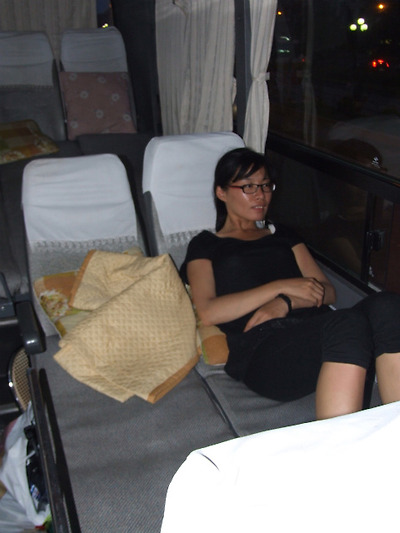 이제 하노이를 떠나 훼로 가야 한다. 1시간만에 후다닥 밥을 먹고 성규씨 커플과 비코트래블 사장님의 배웅을 받으며 슬리핑 버스를 타러 갔는데... 그냥 버스다... 상상했던 2층 침대버스가 아니라(중국 침대버스와 동일하다고 했는데) 앞 쪽은 그냥 좌석이고, 뒤쪽일부만 개조해서 누워갈 수 있도록 해 놓았다. 뭐 편하게 오기는 했지만...하노이에서 훼까지는 비코에서 1인당 15불에 했다. 저녁 7시 30분 출발해 아침 8시 30분에 도착한다. |