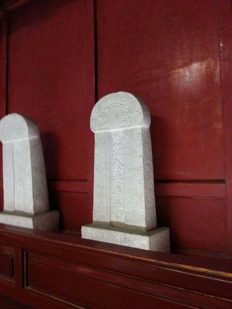 공자를 모시고 있는 재단 양 옆으로 4명의 제자가 가운데를 바라보며 있고, 재단 옆에는 학이 거북이를 밟고 있는 형상이 있는데 역시 같은 이유로 거북이의 머리 부분과 학의 배 부분이 반질거린다. 옛날 아들을 낳는다며 돌하르방 코를 문지르던 우리 네의 간절함과 맞닿아 있지 않을까?