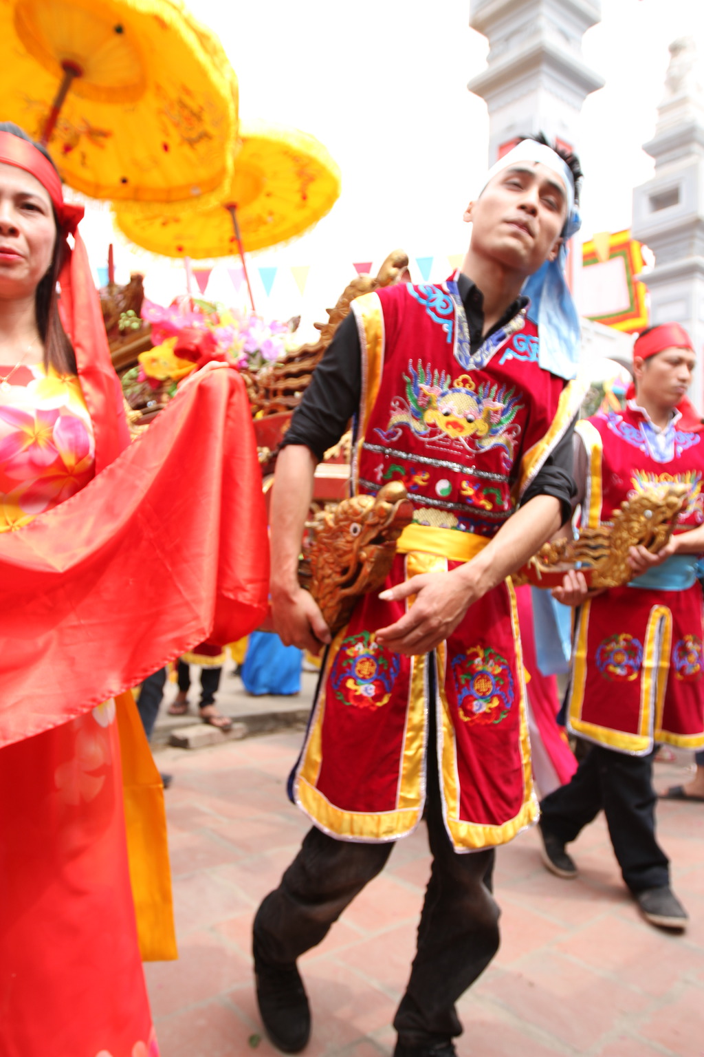 흥미로운 것은 다이딩(Đại Đình)의 건축으로 지붕이 크고 지붕의 모서리는 용, 일각수(一角獸, 하나의 뿔을 가진 짐승), 호랑이, 잉어, 새, 꽃, 잎 등 신령한 동물의 문양으로 장식되어 있다.