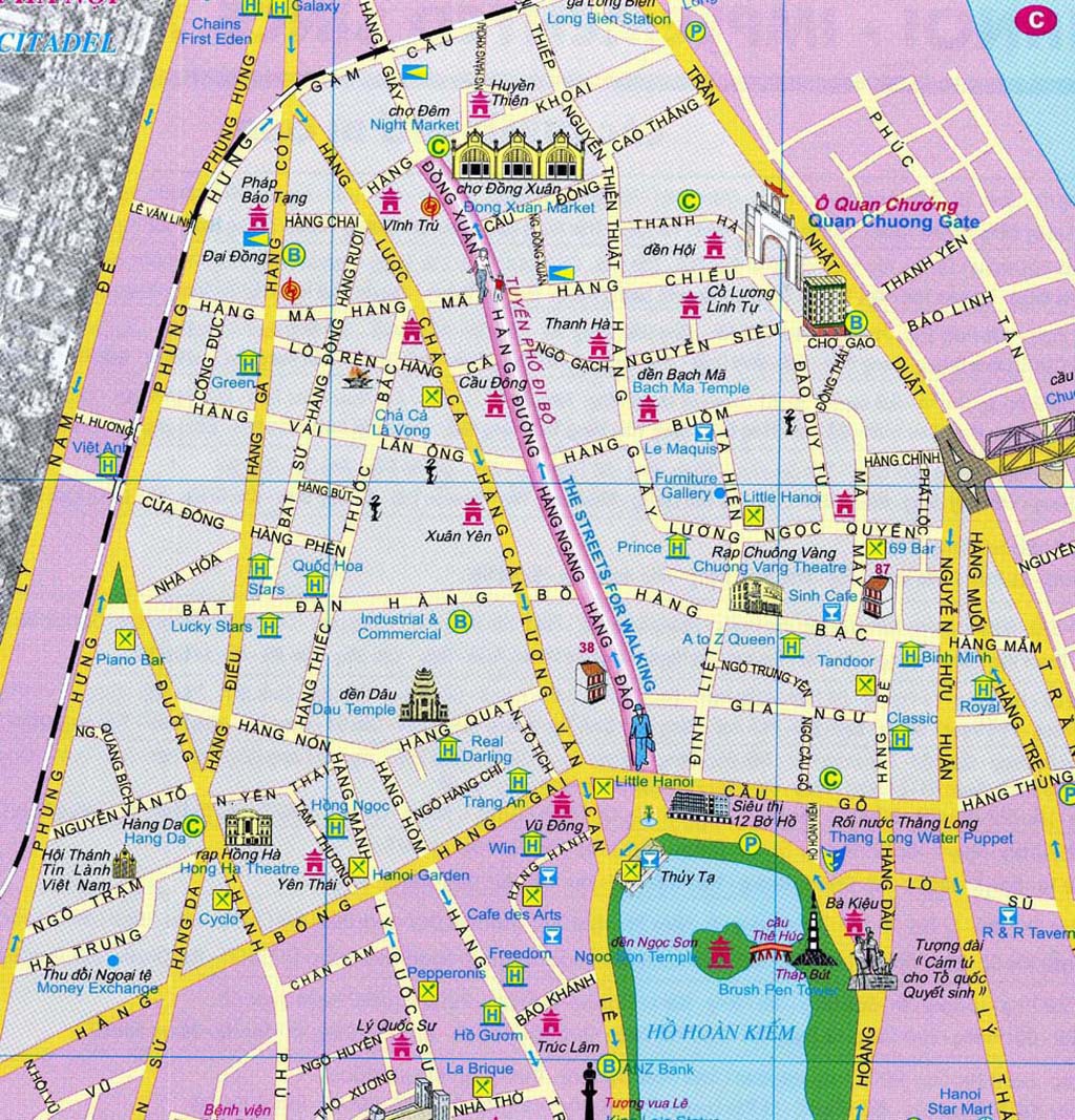 항짜이 (Phố Hàng Chai) : 항짜이거리는 옛날부터 가난한 사람들이 길거리에서 병이나 캔을 모아 가져다 파는 거리였다. 요즘도 가난한 베트남사람들은 병이나 캔을 모아서 팔기 위해 이 거리에 모이기도 한다.