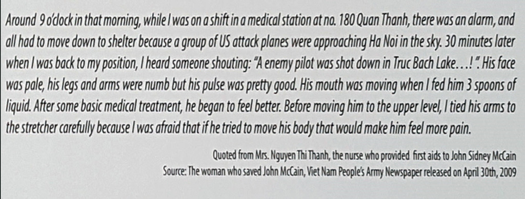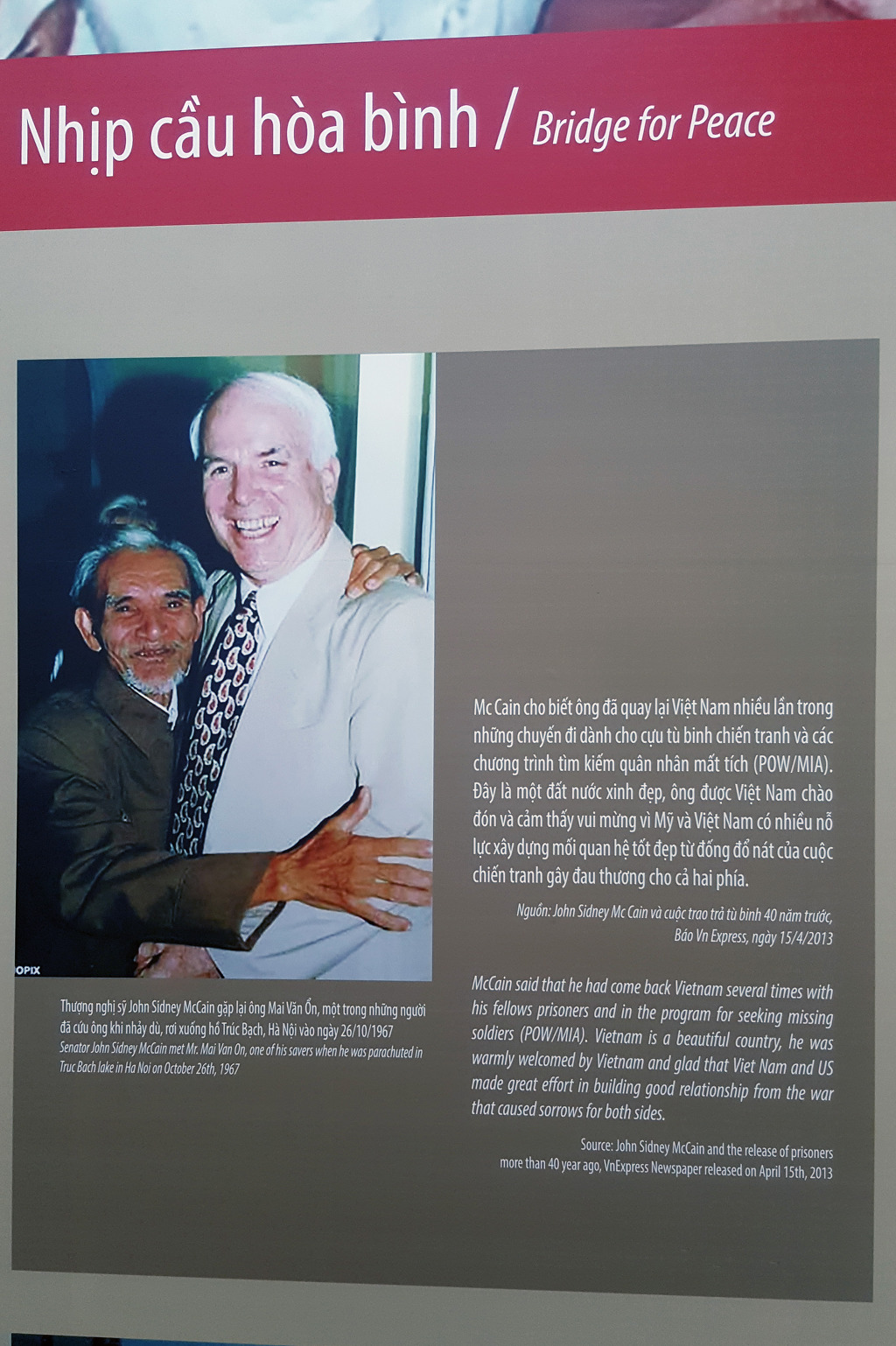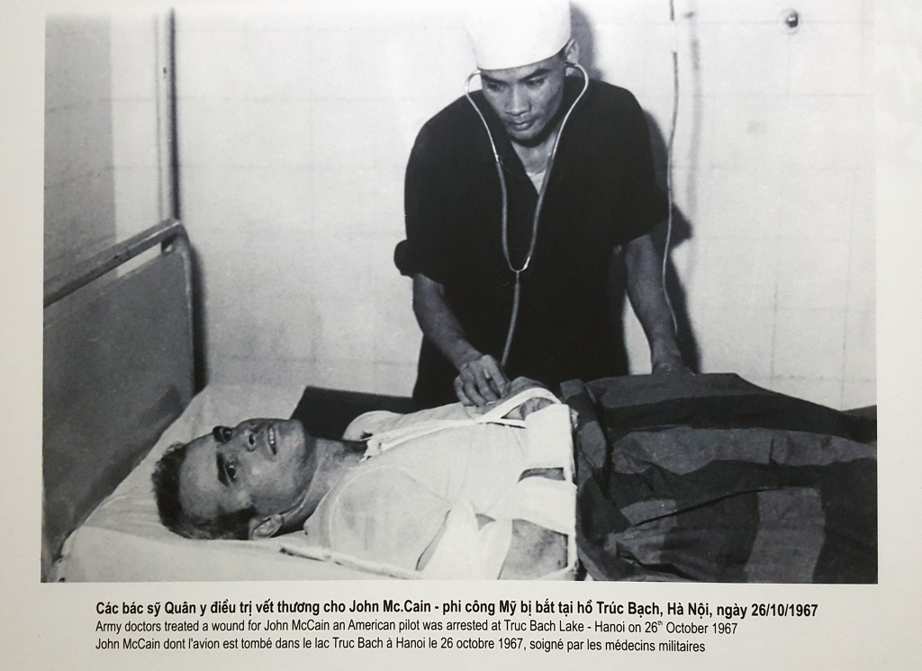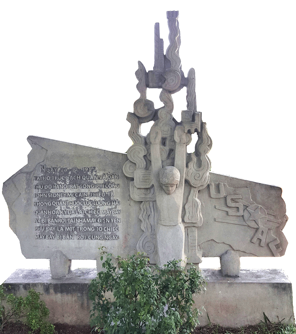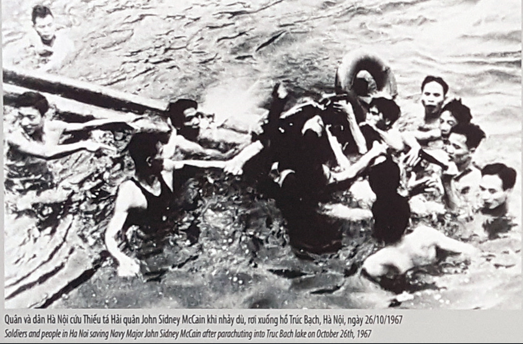 1967년 10월 26일 군인과 민간인이 이날 여기 옌푸(Yên Phú) 전기 공장에 (폭탄을) 떨어뜨린 10대 비행기 중의 하나인 미국 해군 소속 부대 공군 소령 JOHN SIDNY McCAIN 비행기 조종사를 수도 하노이 쭉박호(Hồ Trúc Bạch)에서 생포했다.