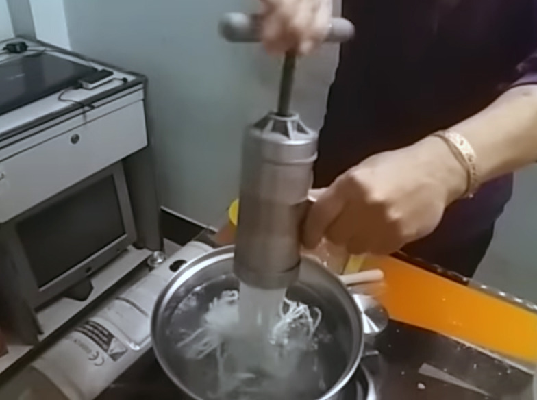 가정용 면을 뽑는 기계장치에 단면의 모양이 4각형인 것도 보인다.