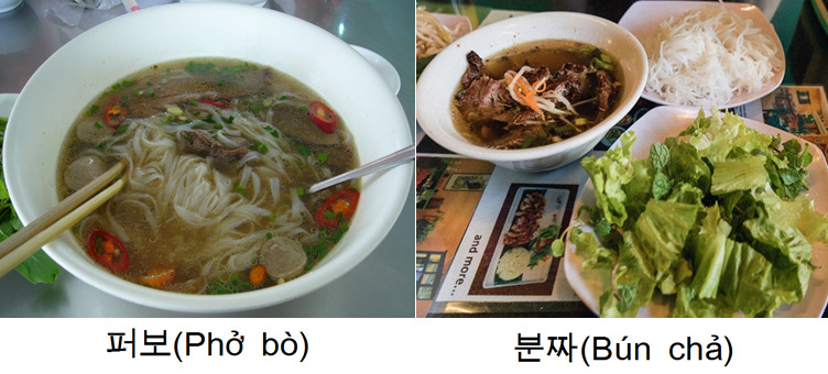 | 유래 | 프랑스군의 식사를 뜻하는 ‘포토푀(pot au feu:불처럼 뜨거운 그릇)’의 푀(feu)가 어원이다. | 역사가 오래된 베트남 쌀국수 |