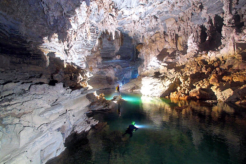 이 여정의 가장 매력적이고 흥미로운 부분은 뚜란 동굴에 도착했을 때부터 시작된다. 관광객들은 이 어두운 동굴 안에서 수영을 해야 하며, 약 5개의 다른 동굴들을 탐험할 수 있다. 동굴 안의 길은 마치 큰 수영장 같은 수 백 미터 넓이의 넓은 길과 좁은 급류가 있는 길들이 이어져 있으며 미끄러운 돌들로 가득하다. 구명조끼를 입고 물의 흐름에 몸을 맡기며 머리에 쓴 렌턴이 달린 안전모를 이용하여 동굴 천장과 벽의 신비로운 종유석 등을 볼 수 있다. 동굴 속의 물은 약간 차가우며, 동굴 내부에는 관광객들이 물 위를 지나가는 소리만 들려 매우 아늑한 느낌을 준다. 물길을 따라서 수영하는 지점이 끝나면, 걸어서 수많은 종유석들과 신비로운 동굴의 모습을 직접 보고 느낄 수 있다. 방문객들은 긴 여정 끝에 자신 앞에 펼쳐진 자연의 아름다움에 놀라움을 감출 수 없을 것이다.