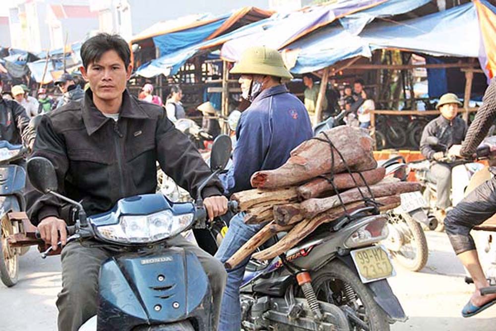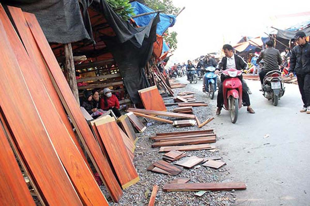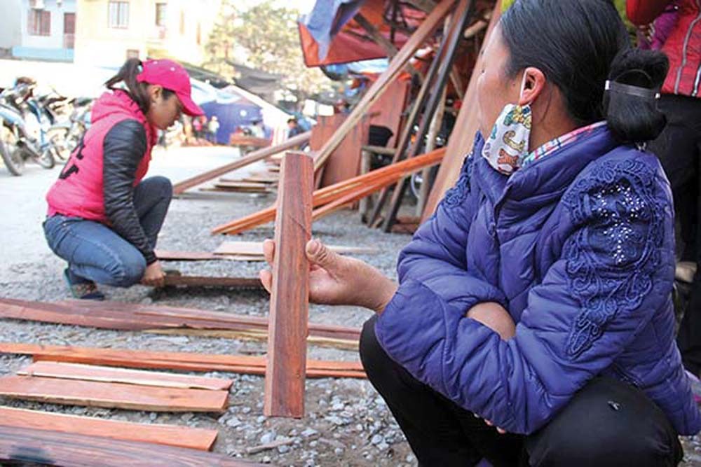짝나무의 작은 샘플, 목재 찌그러기, 약간 그슬린것, 원자재부터 사용된것, 가공된것까지 모두 이곳에서 판매된다. 0.5cm두께의 50cm가량 목재의 가격은 수십만동에 이른다. 결이 아름다운것은 100만동 이상까지 가격이 뛰며 목재 조각, 원자재등은 수십만동에서 100만동/kg에 판매되고 있다.