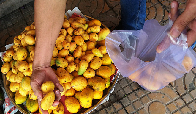손바닥만한 크기의 뚱뚱하고 작은 망고인데 약간 텁텁한 맛과 단맛이 섞여 있다.