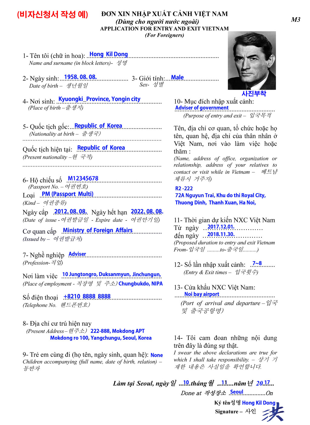 베트남 비자 신청은 다음의 서류를 작성하여 베트남 대사관에 접수해야 한다.