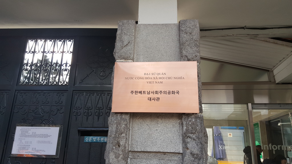 신사역에서 3호선 지하철을 타고 안국역에 내리면 편리한데 핸드폰에서 구글지도가 열리지 않아 판단을 잘못하여 경복궁역에서 내렸다. 경복궁역에서 동십자각까지 걸어와서 택시로 베트남대사관을 찾으니 기사도 대사관 위치를 잘 모른다. 차량 네비게이션을 이용하여 목적지를 설정하고서 겨우 찾았다.