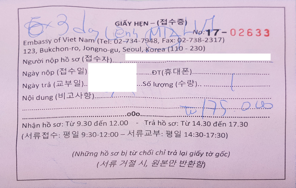 베트남대사관에 전화하여 비자 접수하려고 한다고 하니 어떤 비자냐고 묻길래 파견 비자라고 하니 12시 이전까지 오라고 한다. 옆의 여행사 담당자가 오후에 가면 시간외 접수를 해야하므로 추가 비용이 발생한다고 알려 주었다.