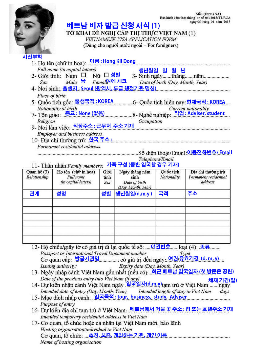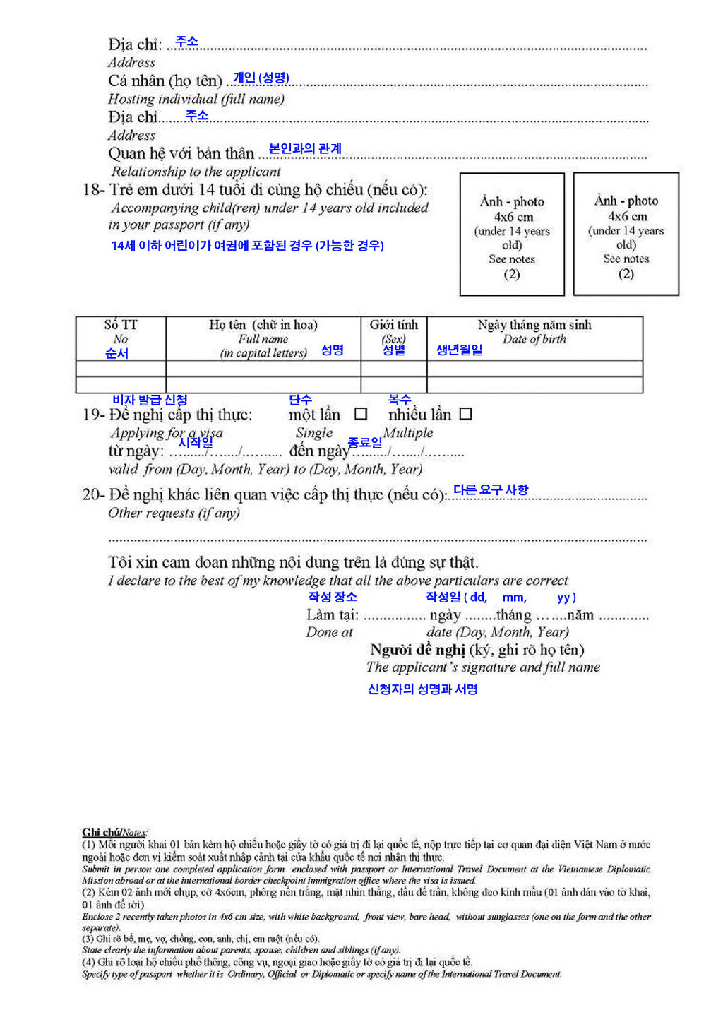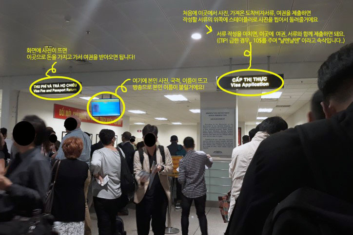 한국에서 미리 비자발급신청서를 작성하여 인쇄해서 베트남 공항에 제출하면 시간을 절약할 수 있다.