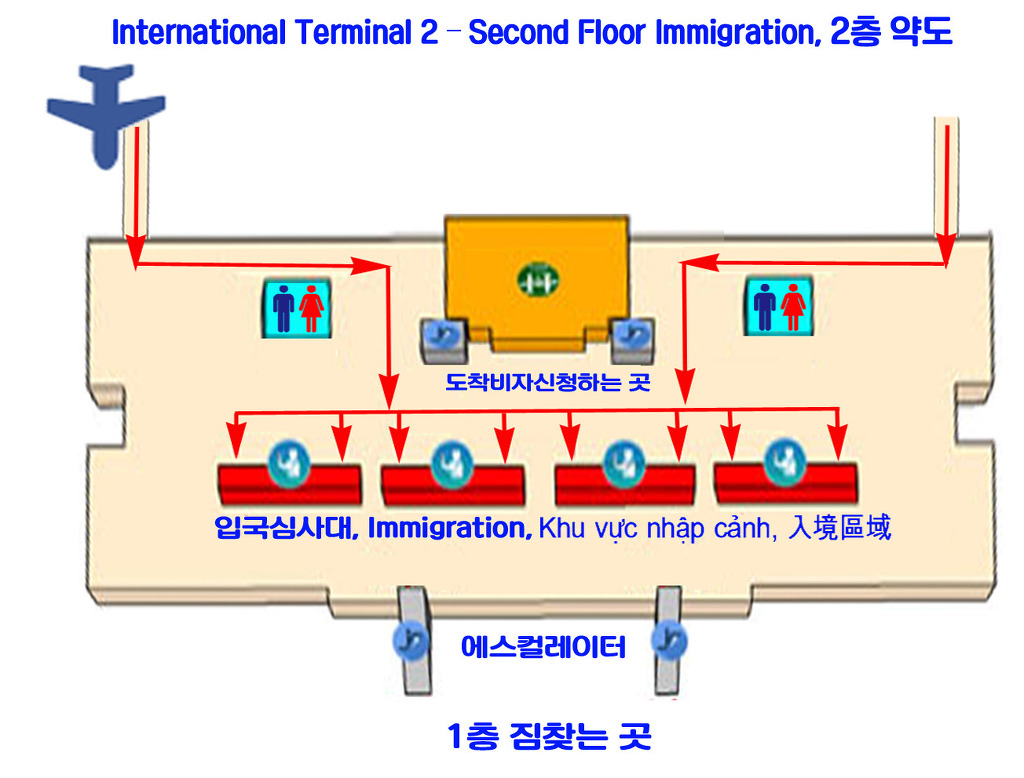 하노이 노이바이 국제공항 입국 심사, 비자 접수 장소 약도